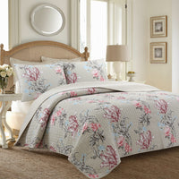 Cozy Line Home Fashions Taupe Khaki Floral Blooming 100% Cotton Reversible Quilt Bedding Set, Coverlet, Bedspread (Taupe Bloomin