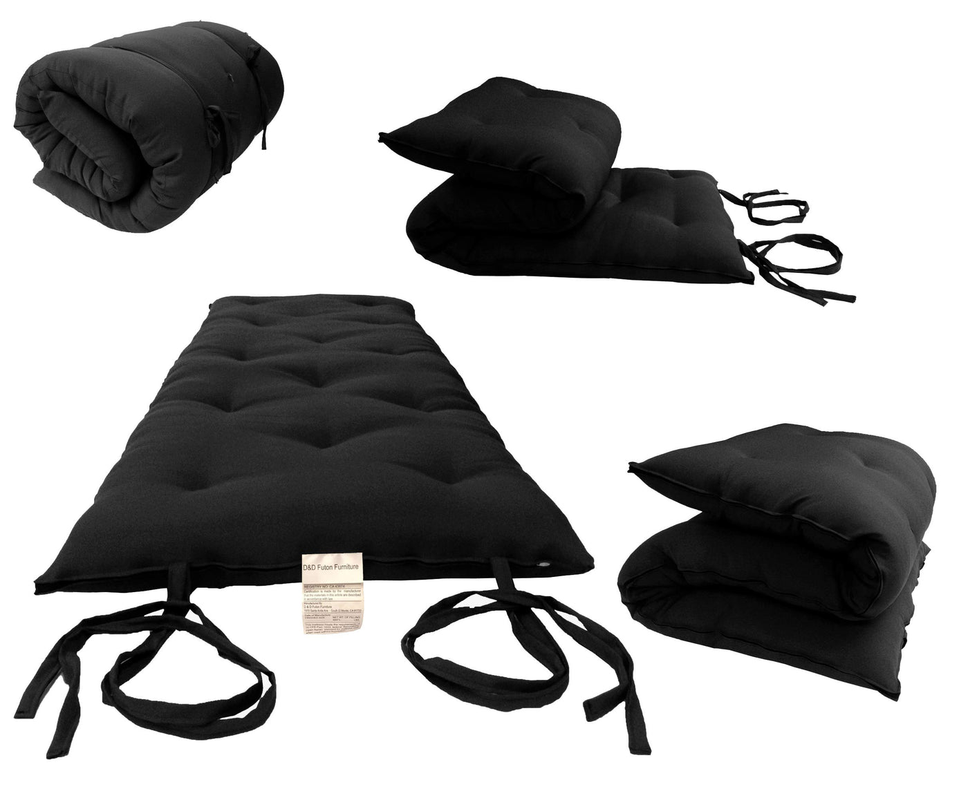 D&D Futon Furniture Cotton/Foam Floor Rolling Futon Mattresses, Yoga Meditation Mats, Black (Full Rv 3 X 48 X 74)