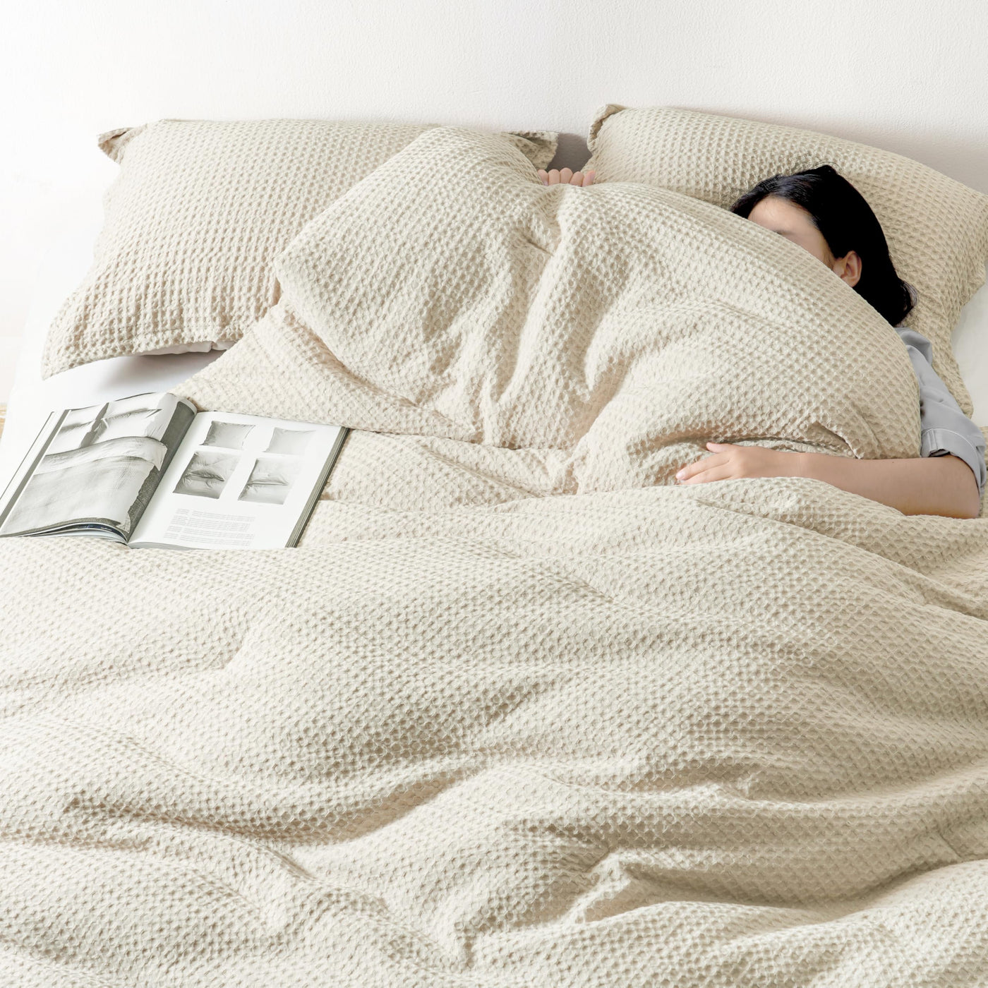 David'S Home Waffle Weave Comforter Set 3Pcs King Size, Soft Breathable Lightweight Warm For All Season, Elegant Aesthetic Home Decor Bedding Set Collection, 1 Comforter With 2 Pillow Shams, Linen