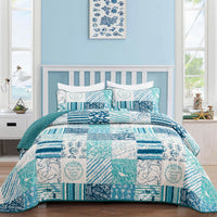 Dinjoy Summer Nautical Ocean Quilt Set Twin Size, Beige Blue Green Beach Coastal Themed Bedding Set Retro Anchor Sailboat Patter