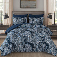 Djy Navy Paisley Comforter Set Queen Size 7 Piece Bed In A Bag Boho Paisley Pattern Comforter Set Soft Lightweight Microfiber Bl