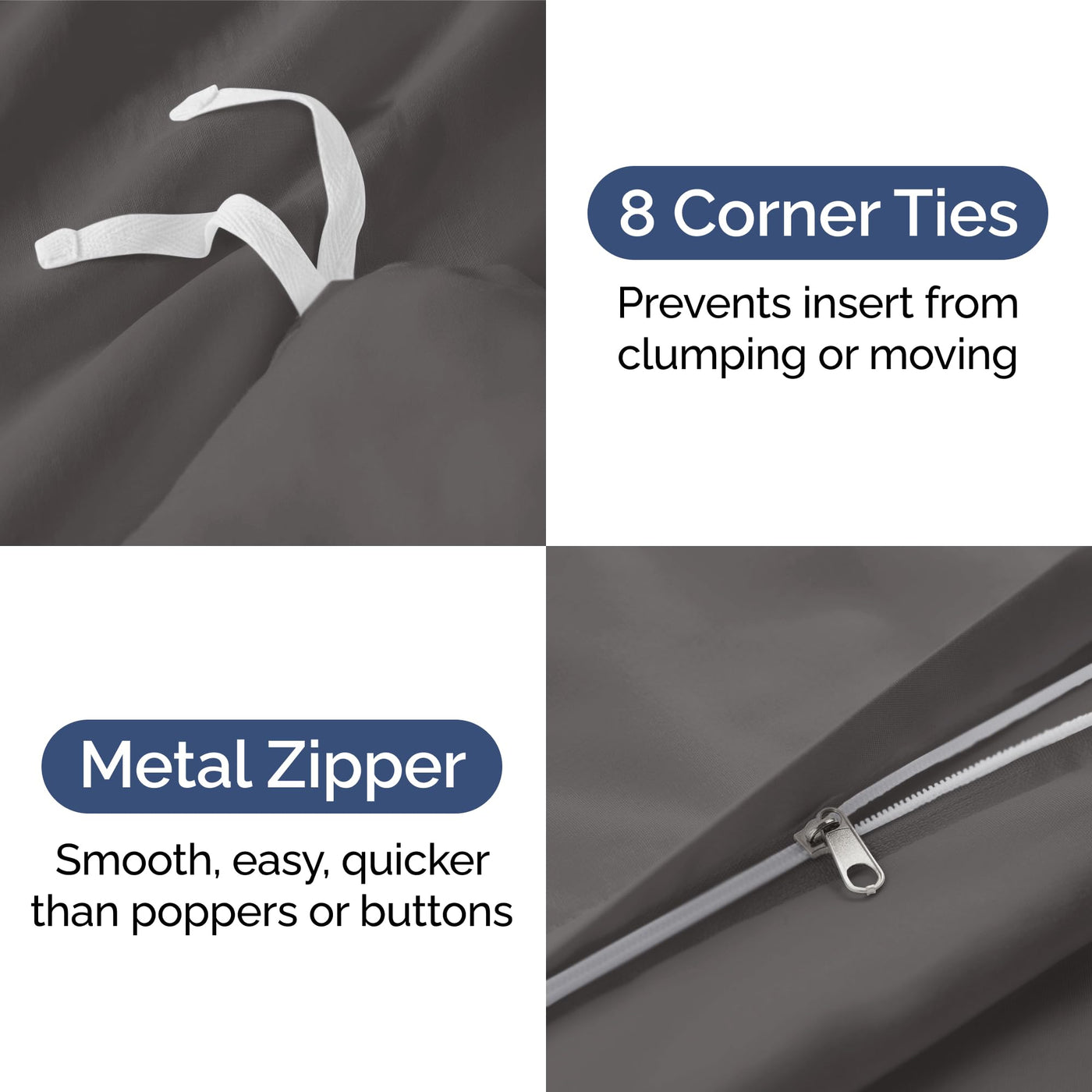 Duvet Cover Full Size Set - Extra Soft Full Size Duvet Cover 80 X 90 With 2 Pillow Shams - Hotel Luxury, Easy Care And Fade Free W/ Zipper Closures & Ties - Comfy Breathable Bedding Set (Dark Grey)