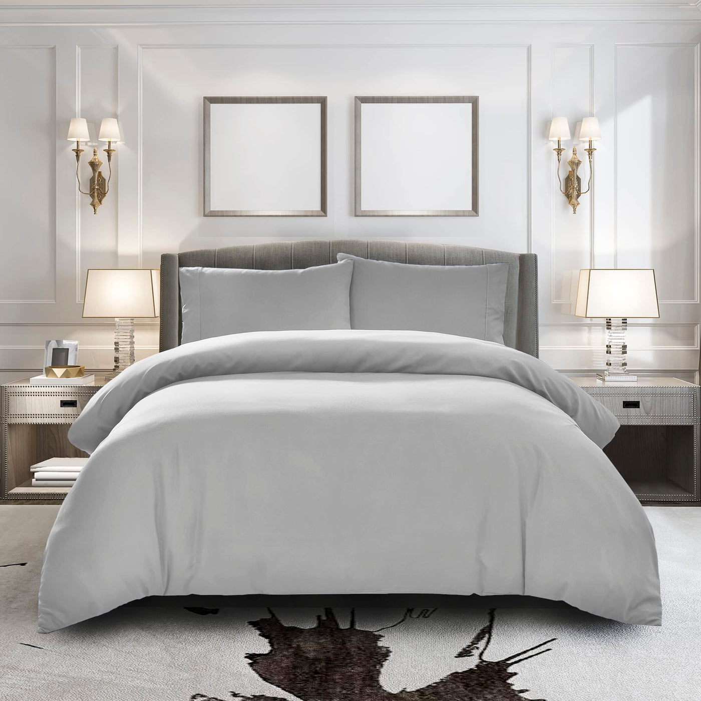 Duvet Cover King [3-Piece, Light Grey] - 1 Comforter Protector With Zipper Flap And 2 Pillow Shams - Hotel Luxury 1800 Brushed M