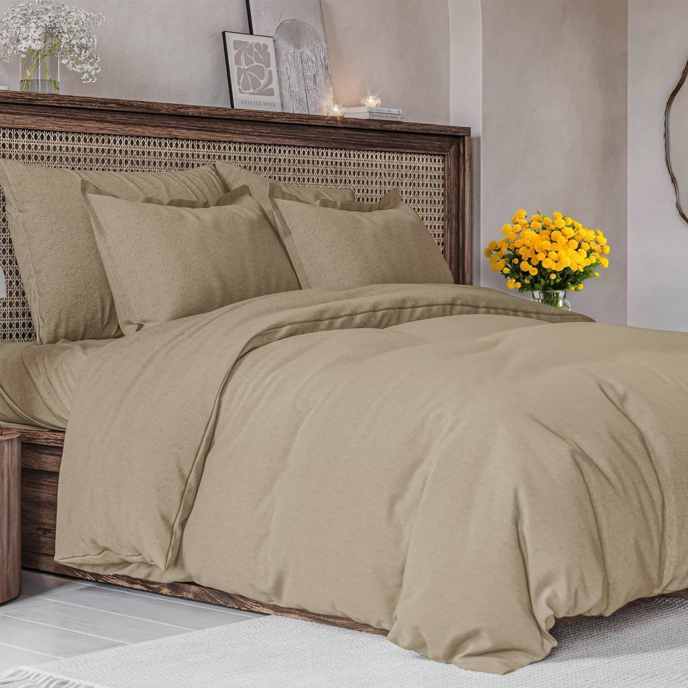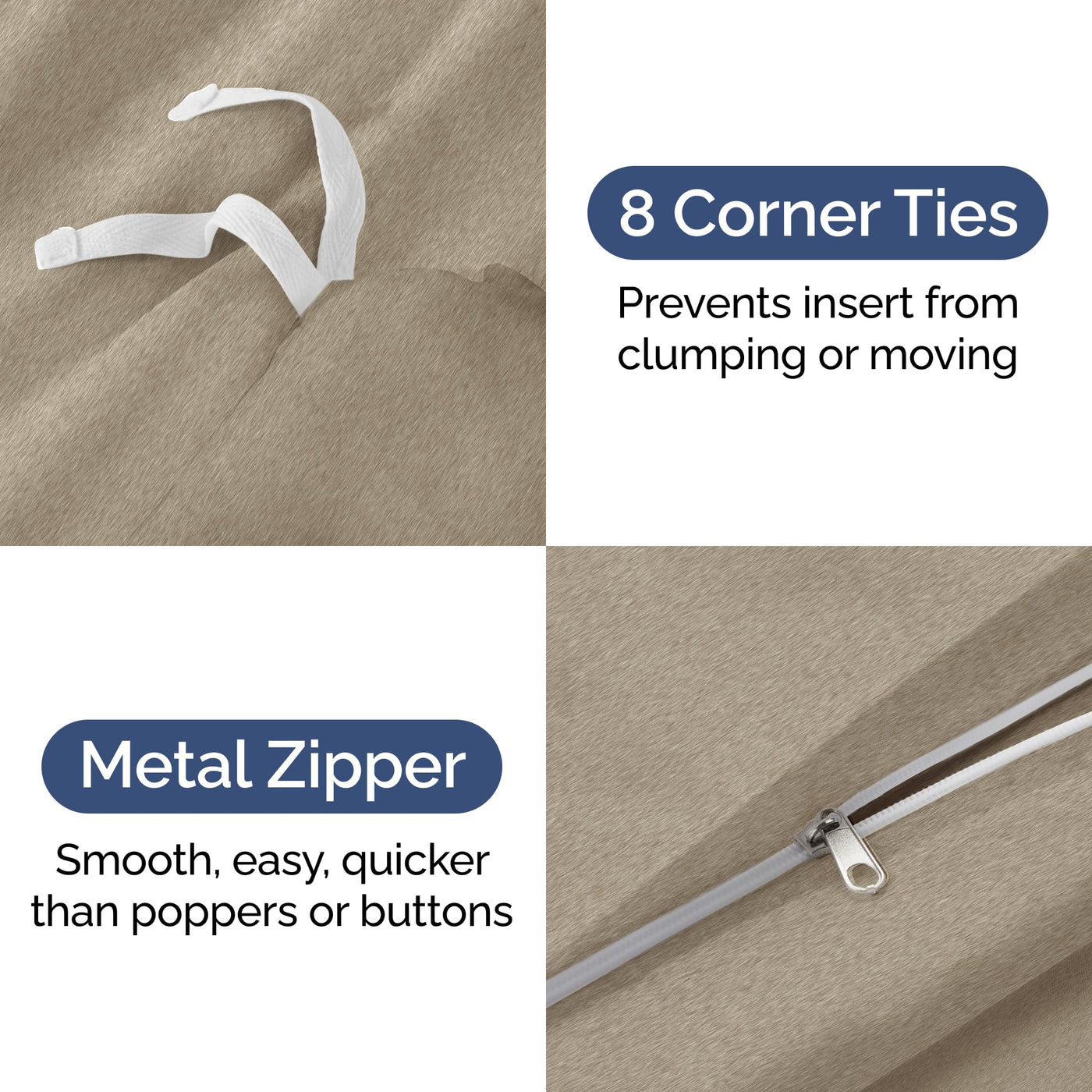 Duvet Cover Queen Size Set - Extra Soft Queen Size Duvet Cover 90 X 90 With 2 Pillow Shams - Hotel Luxury Easy Care And Fade Free W/ Zipper Closures & Ties - Breathable Bedding Set (Heathered Beige)