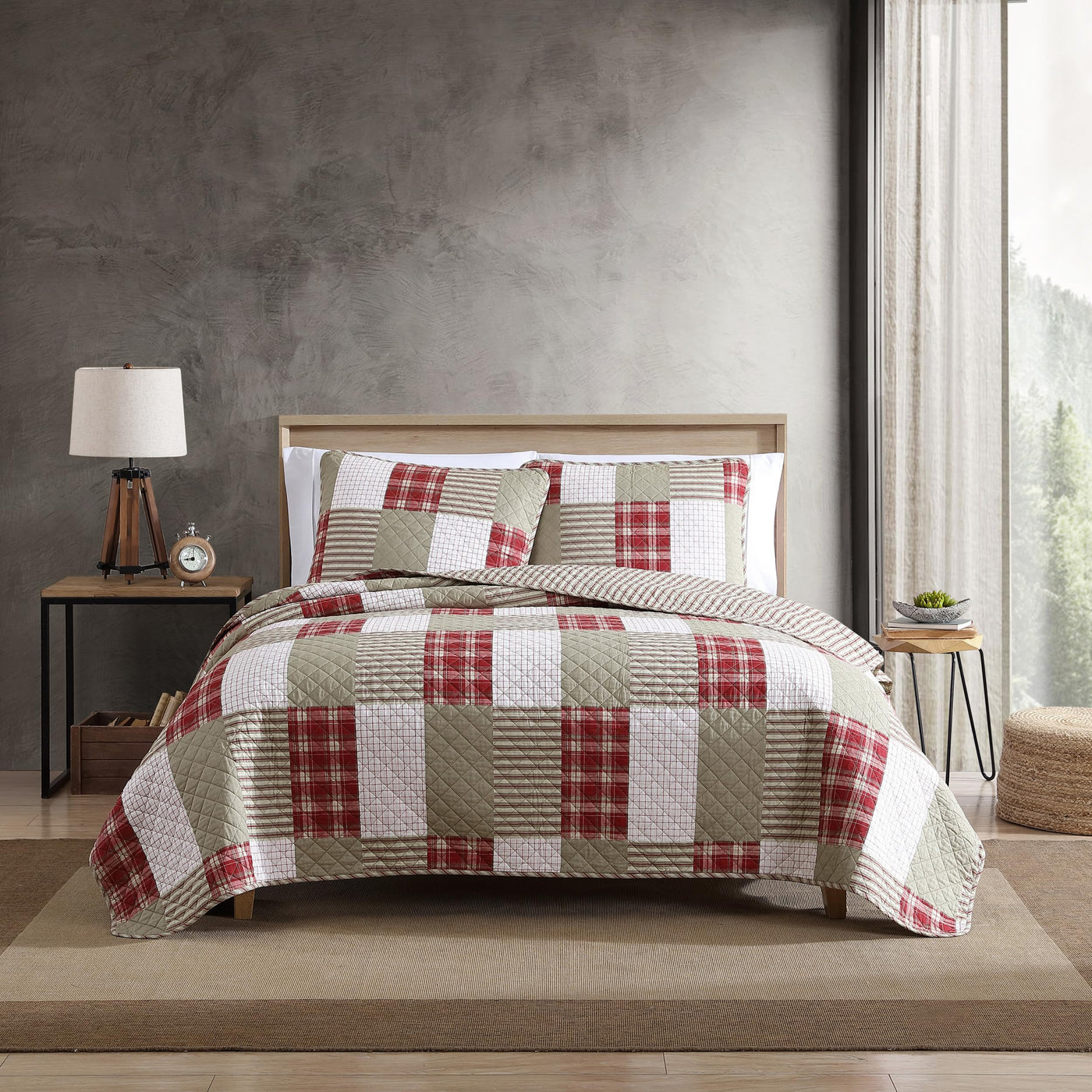 Elevate Your Bedding With The Eddie Bauer Camano Island Plaid Collection. A Traditional Patchwork Plaid That Is As Timeless As Is It Handsome, In Shades Of Ivory, Khaki And Red. Reverses To A Modern Stripe In Shades Of Khaki. Made From 100% Cotton And Pre-Washed, The Quilt Set Is Breathable, Durable And Soft. Filled With A Blend Of 80% Cotton And 20% Polyester, Eddie Bauer Quilts Are Lightweight But Warm. Shams Are Included To Round Out The Ensemble. (One Sham Included With Twin Size.) Rounded Corners And Unique Diamond Quilt Stitch Are The Details You'D Expect From Eddie Bauer. Packaged Thoughtfully Without Plastic. Machine Washable For Easy Care. Available In Multiple Colors, Other Colors Sold Separately