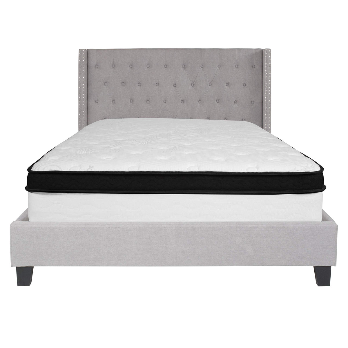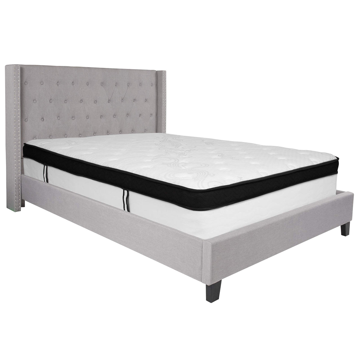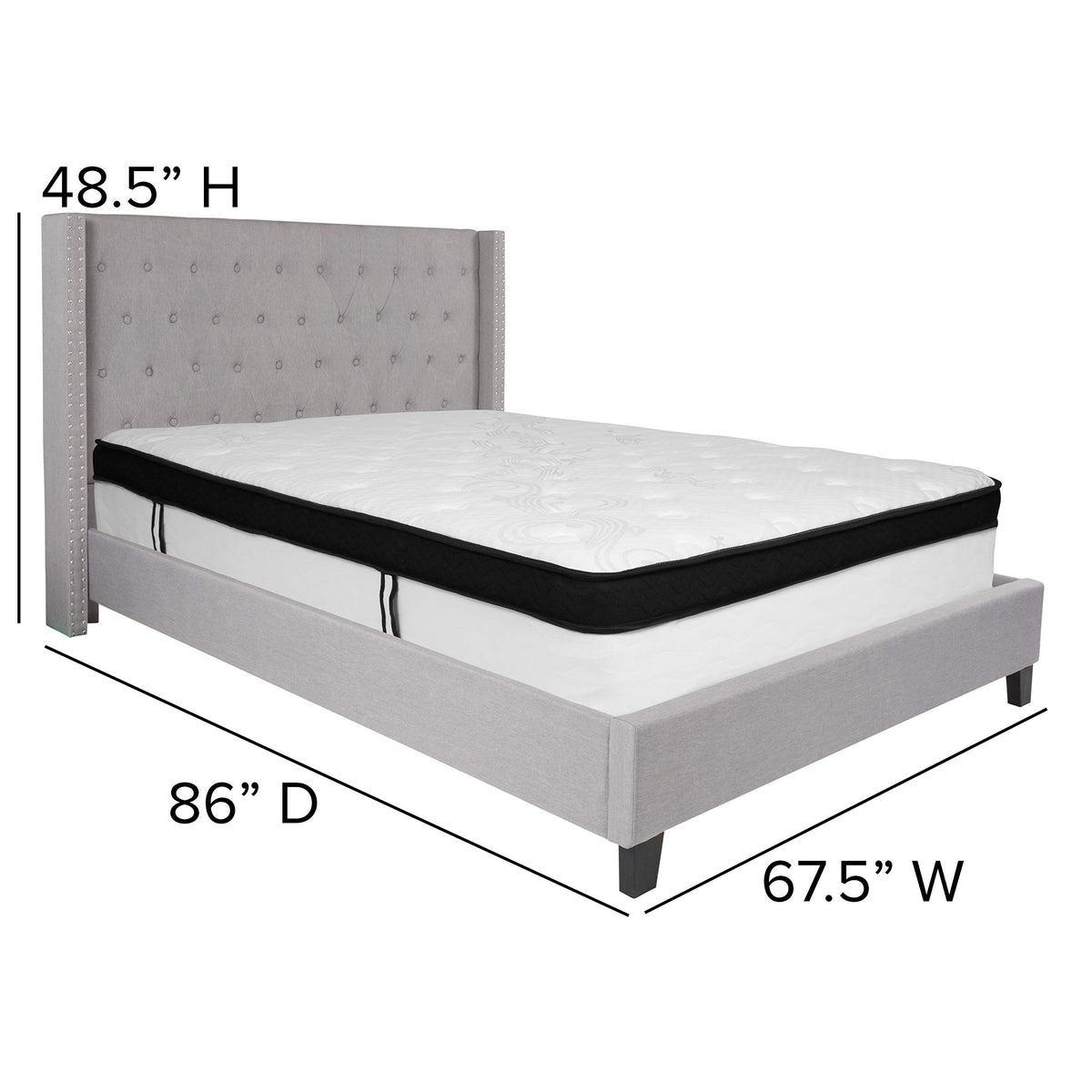 Flash Furniture Riverdale Queen Size Tufted Upholstered Platform Bed in Light Gray Fabric with Memory Foam Mattress