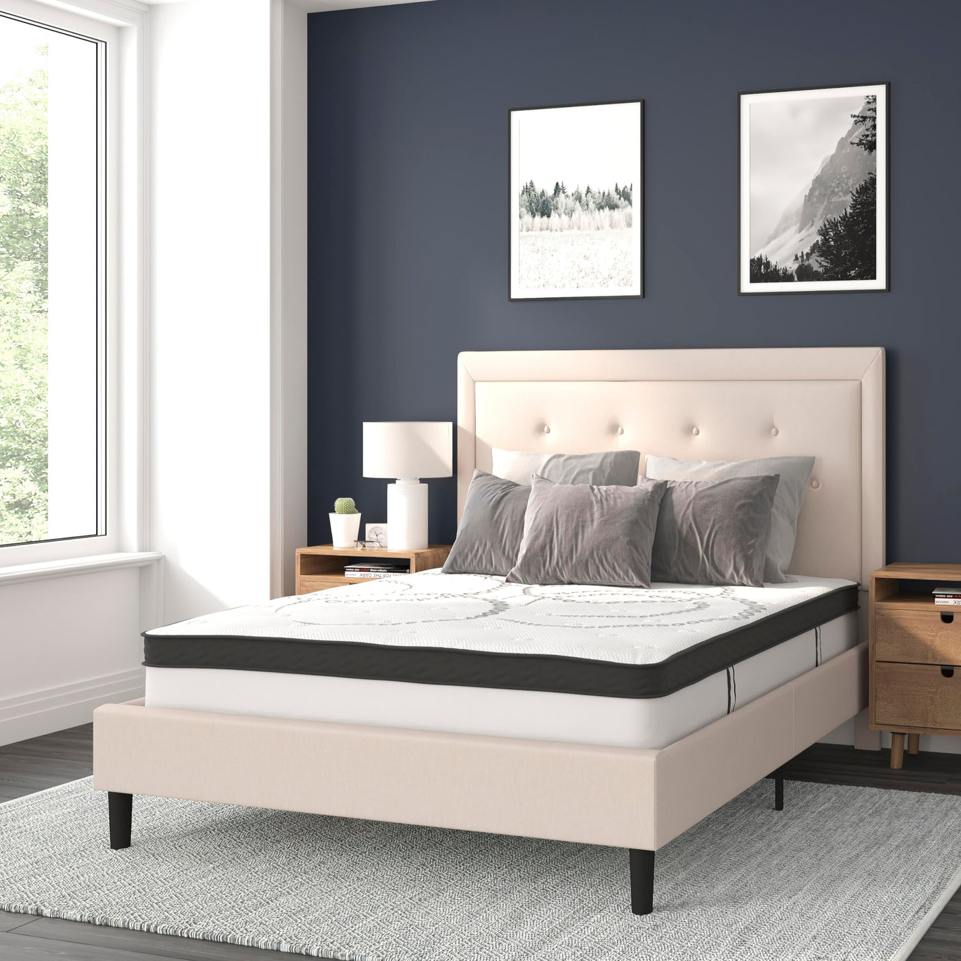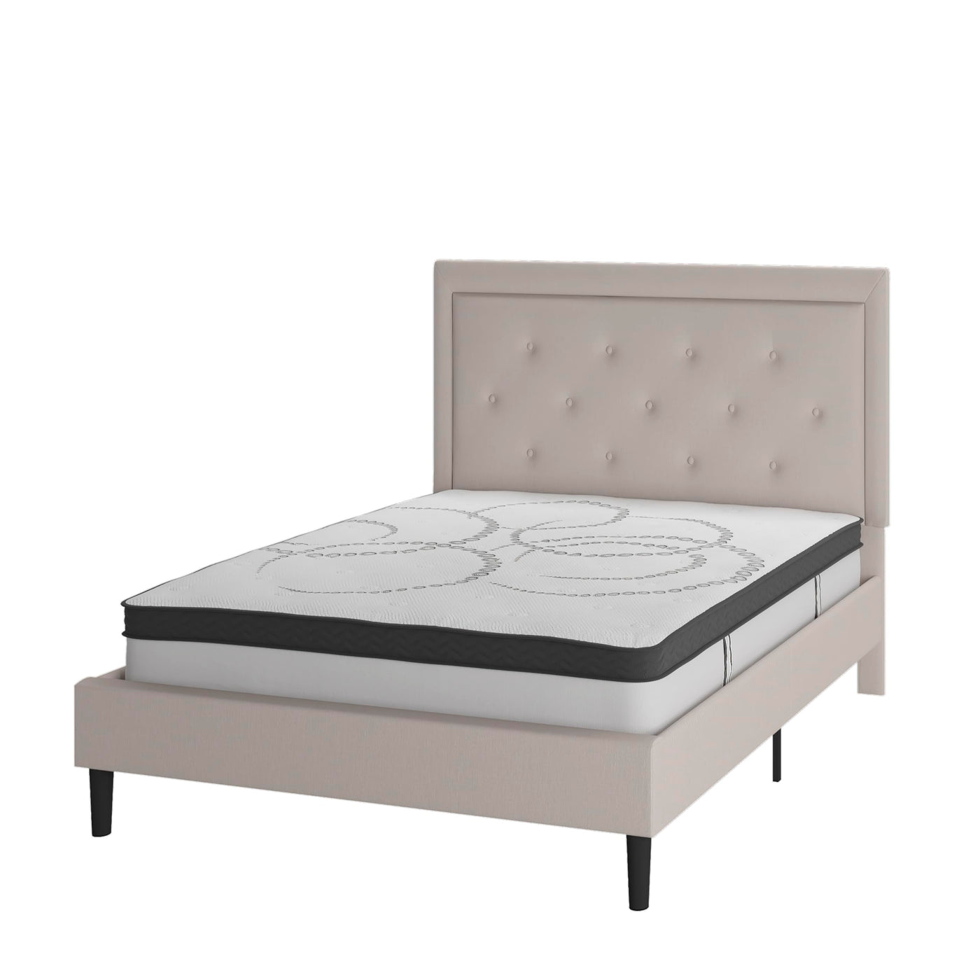 Flash Furniture Roxbury Full Size Tufted Upholstered Platform Bed In Beige Fabric With 10 Inch Certipur-Us Certified Pocket Spring Mattress