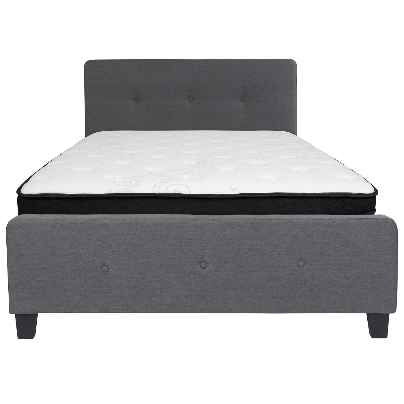 Flash Furniture Tribeca Full Size Tufted Upholstered Platform Bed in Dark Gray Fabric with Memory Foam Mattress