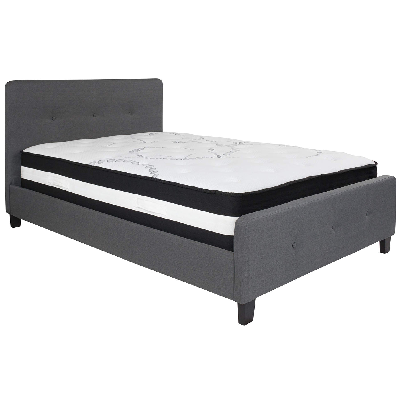 Flash Furniture Tribeca Full Size Tufted Upholstered Platform Bed in Dark Gray Fabric with Pocket Spring Mattress