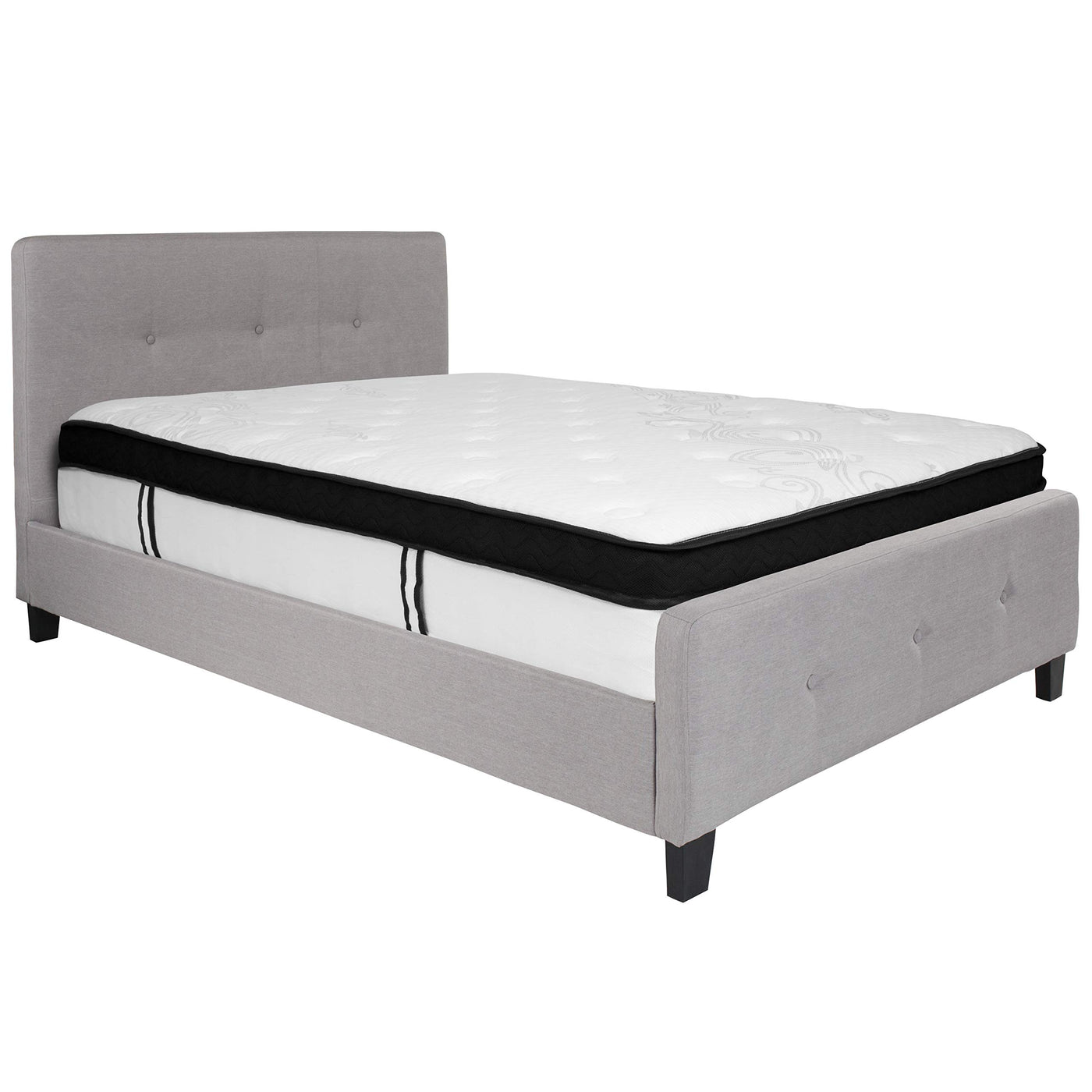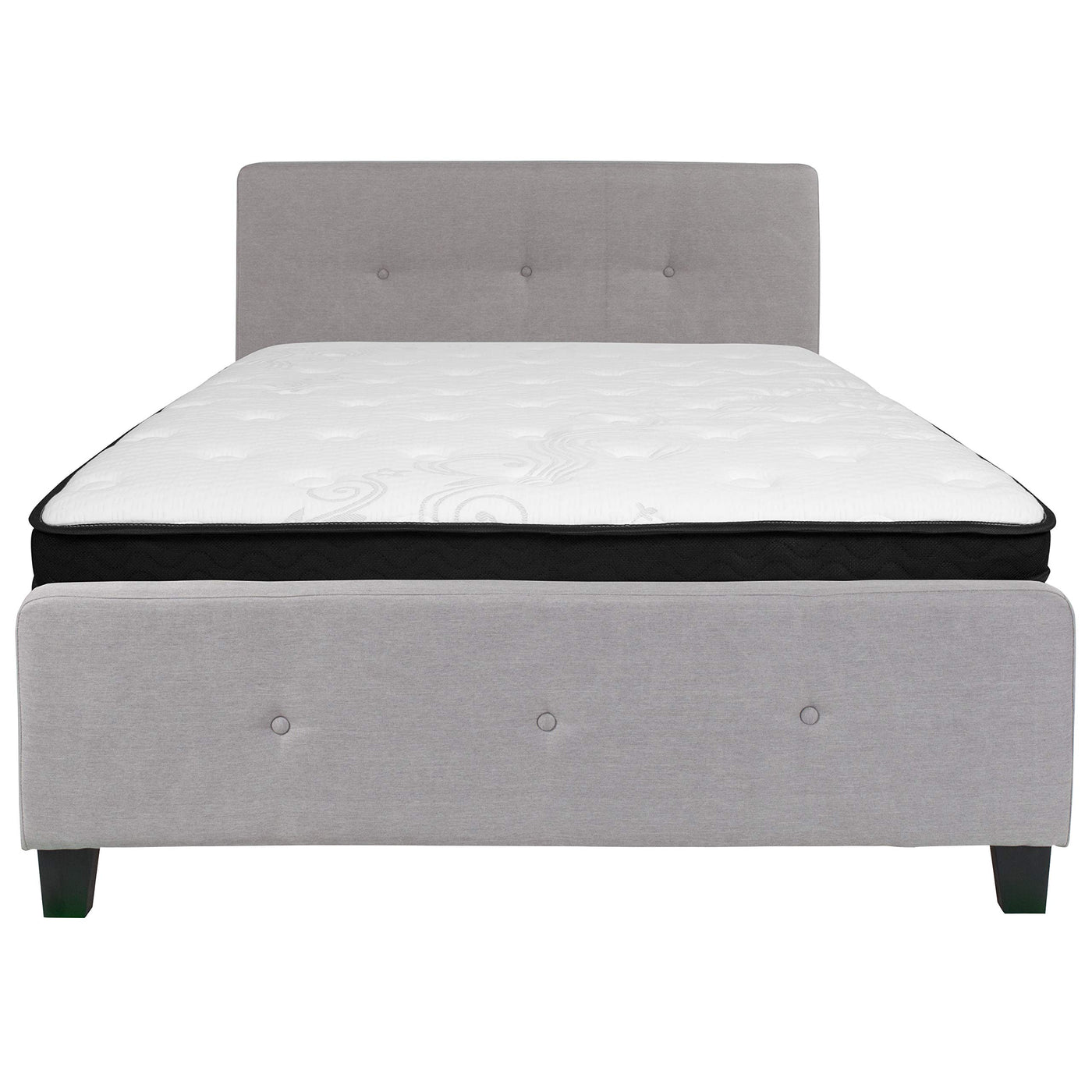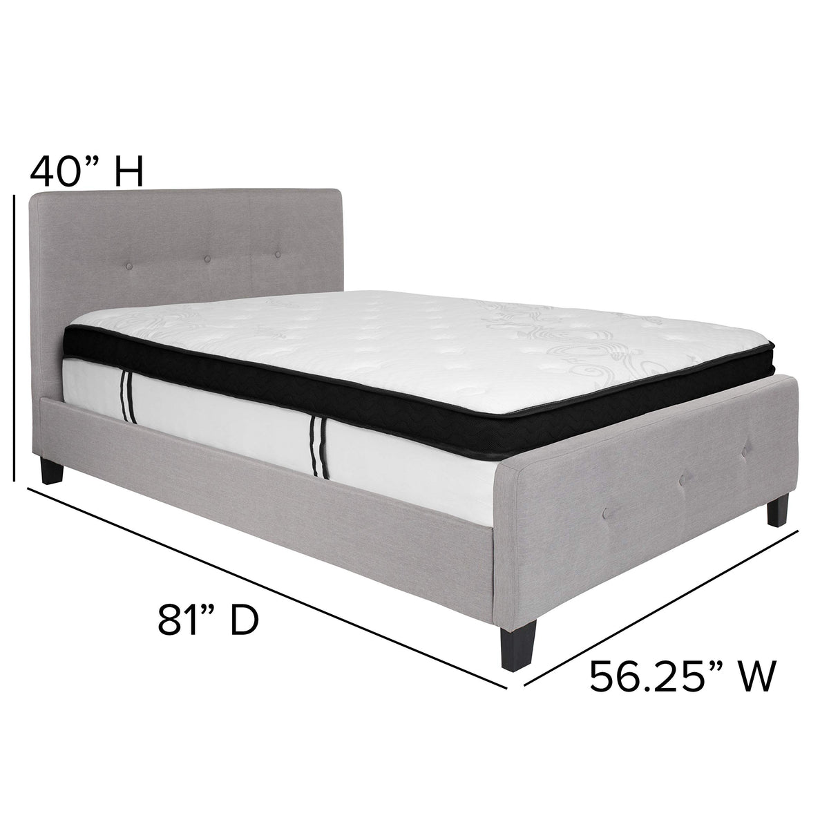 Flash Furniture Tribeca Full Size Tufted Upholstered Platform Bed in Light Gray Fabric with Memory Foam Mattress
