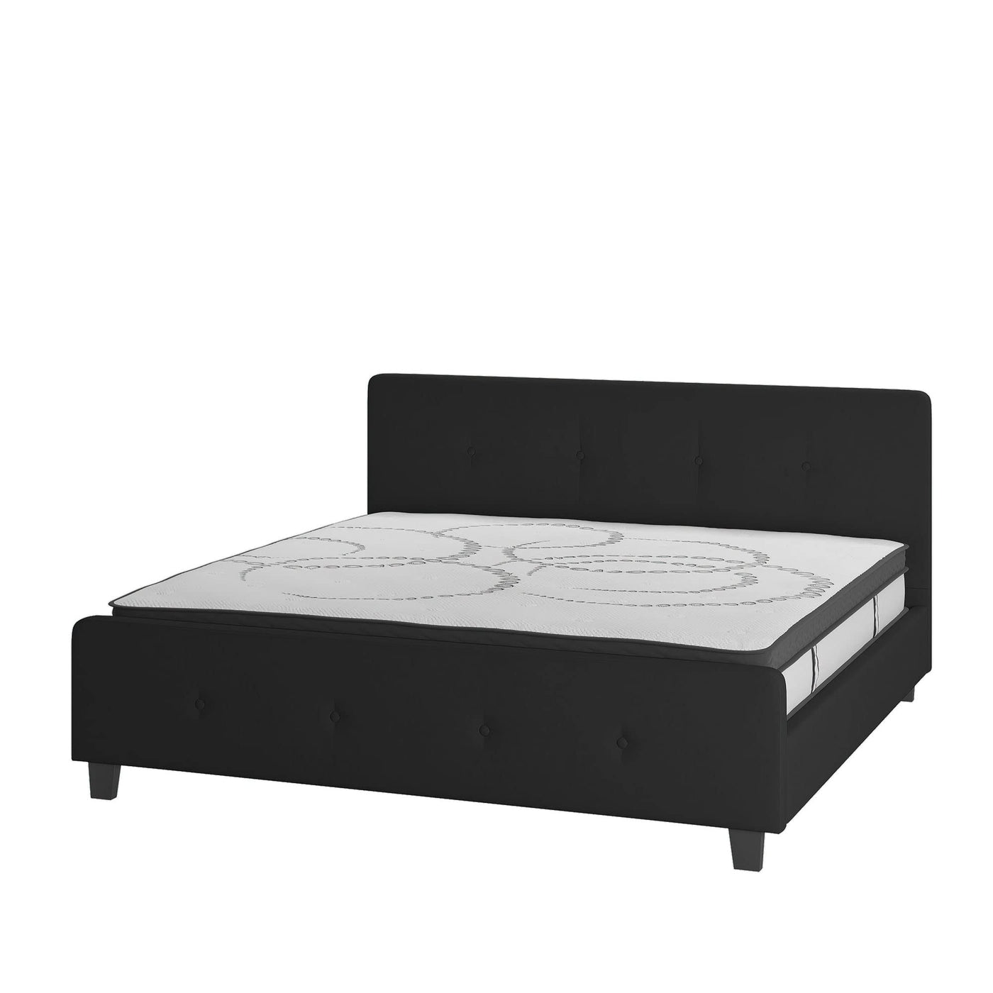 Flash Furniture Tribeca King Size Tufted Upholstered Platform Bed In Black Fabric With 10 Inch Certipur-Us Certified Pocket Spring Mattress