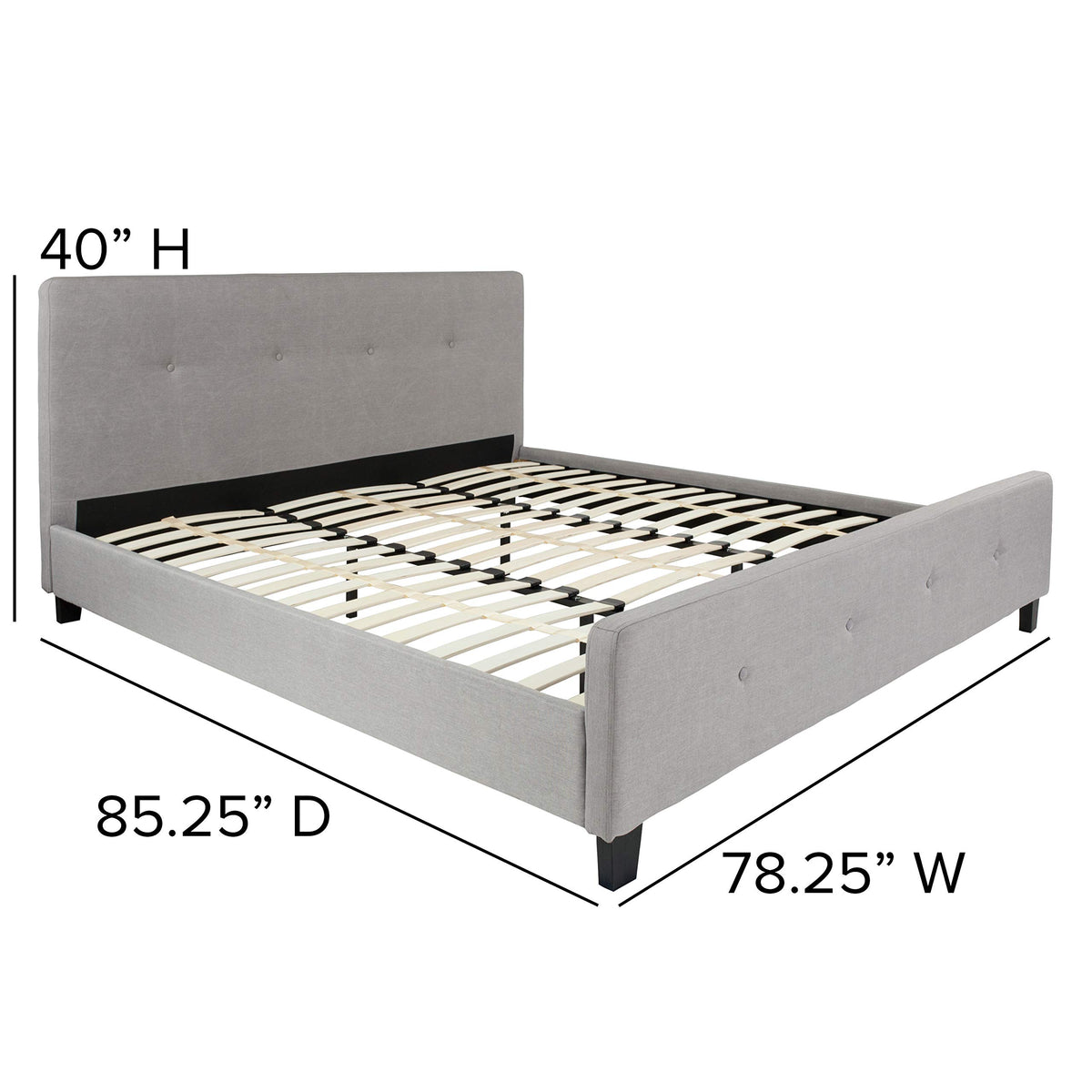 Flash Furniture Tribeca King Size Tufted Upholstered Platform Bed In Light Gray Fabric With 10 Inch Certipur-Us Certified Pocket Spring Mattress