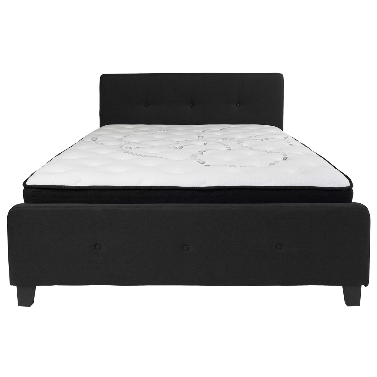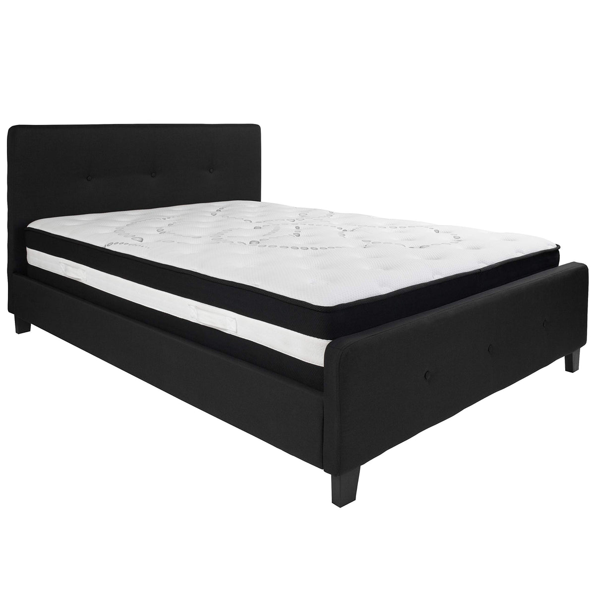 Flash Furniture Tribeca Queen Size Tufted Upholstered Platform Bed in Black Fabric with Pocket Spring Mattress