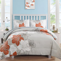 Floral Comforter Set King Size, Terracotta Floral Pattern Printed On Light Grey, Soft Microfiber 7 Pieces Bed In A Bag (1 Comfor
