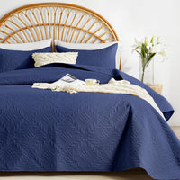 Flymme King/Cal King Size Quilt Bedding Set,Navy Lightweight Microfiber Soft Bedspread,Retro Botanical Floral Leaf & Geometric G