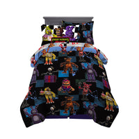 Bring The Animatronic Adventures Of Five Nights At Freddys To A Bedroom Near You With This Cool And Colorful Bedding Set. Featuring Freddy Fazbear, Bonnie, Chica, Foxy, Balloon Boy And The Puppet From The Popular Indie Video Game, This High-Quality Bedding Is Sure To Be A Hit With Young Fnaf Fans.The High-Quality Microfiber Set Includes A Comforter, Fitted Sheet, Flat Sheet, Pillowcase(S), And Pillow Sham(S). For Fun And Versatility, One Side Of The Reversible Comforter Features Images Of Popular Fnaf Characters Against A Dark Blue And Black Backdrop, While The Flipside Features More Colorful Character Artwork Against A Bold Shade Of Blue. Coordinating Colors And Imagery On The 'Freddys Crew' Patterned Sheets, Pillowcase(S) And Pillow Sham(S) Help Create A Cohesive Five Nights At Freddys Look.Five Nights At Freddys Has Grown From Its Horror Videogame Roots To Become A Frighteningly Successful Franchise That Includes Everything From Collectible Action Figures To Plush Dolls To Clothing And More. Now You Can Bring The Excitement Of Freddy Fazbears Pizzeria Home With This High Quality 'Freddys Crew' Patterned Bedding Bundle.Set Is Available In A Twin Size 5 Piece Bedding Set Or A Full Size 7 Piece Bedding Set.