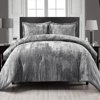 Made Of Distressed Velvet With Crinkle Finishing For The Comforter And Sham Face, Brushed Solid Microfiber For The Reverse, With Light Weight Down Alternative Poly Fill, 3 Pieces.