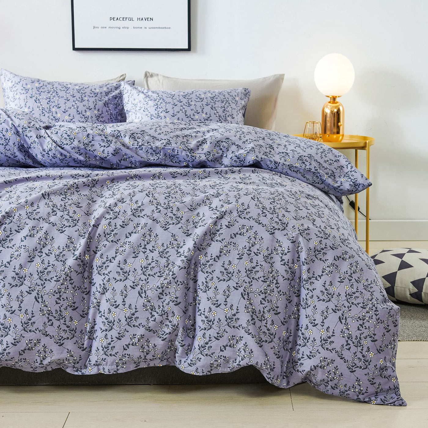 Honeilife Duvet Cover King Size - 100% Cotton Comforter Cover Floral Duvet Cover Sets,Pale Purple Duvet Cover With Zipper Closur