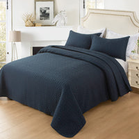 Hygge Hush Summer Quilt Set, King Size Navy Blue Leaves Pattern 3 Pieces Quilt Set, Oversized Modern Style Bedspread Set For All