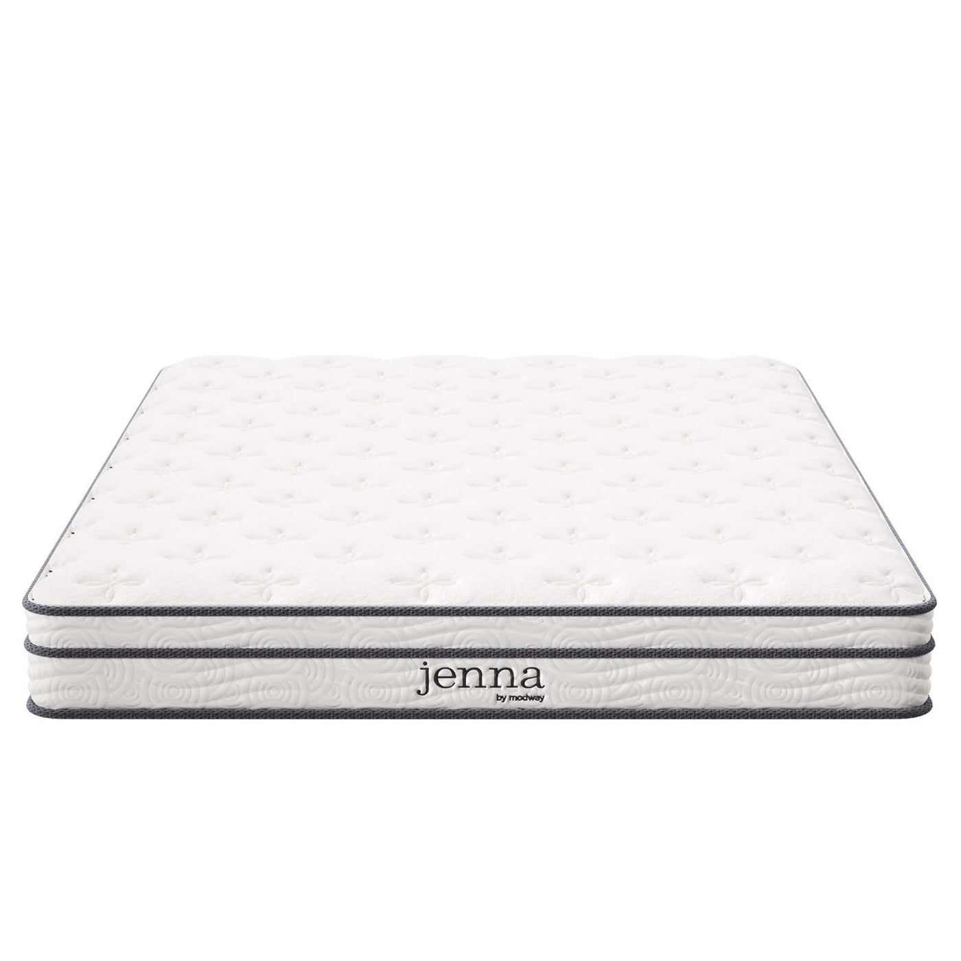 Enjoy rejuvenating sleep with the Jenna 6 Innerspring Mattress. Designed for side, back, and stomach sleepers, this bedroom mattress features 4.5 pocket coils that not only promote pressure relief and proper spinal alignment but also help prevent the mattress from sinking and sagging. For maximum comfort, the coils are cushioned beneath layers of responsive foam and topped with a breathable quilted cover. Shipping in a compact box, this mattress comes compressed and rolled for easy delivery. Upgrade your bedroom with the firm yet plush support of the Jenna Innerspring Mattress.Set Includes:One - Jenna 6 Innerspring and Foam Full Mattress