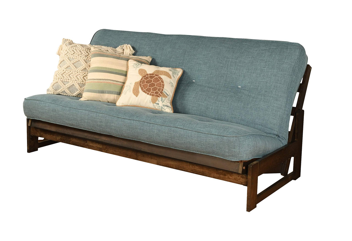 Kodiak Furniture Aspen Futon With Linen Fabric Mattress In Reclaim Mocha/Blue