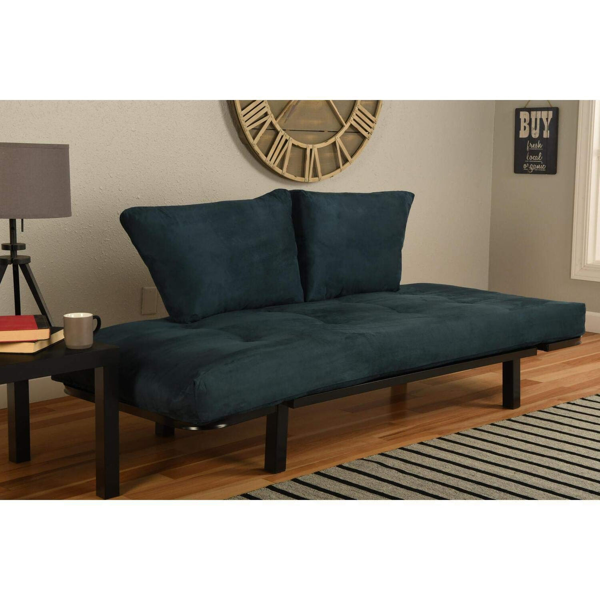 Kodiak Furniture Spacely Black Lounger Frame with Suede Navy Mattress Blue/Black Frame