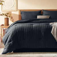 Laojin Balhen Full Size Comforter Set 8 Pieces, Seersucker Bed In A Bag Full, Black Comforter With Sheets, Comforters Full Size