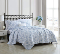 Bring New Life To Your Bedroom Decor With The Walled Garden Quilt Set From Laura Ashley. This Refreshing All-Cotton Set Combines Stunning Shades Of Blue In A Floral Toile Pattern That Is Printed Continuously Allover A Crisp White Face. Reversing To A Smaller Scale Floral Pattern In White On A Light Blue Ground, This Set Is Perfect For Creating Versatile Bedroom Looks. Use As A Layering Piece With Your Current Bedding Or As A Stand Alone Piece In The Warmer Months. The Quilt Features A Polyester/Cotton Blended Fill And Is Machine Washable For Easy Care.
