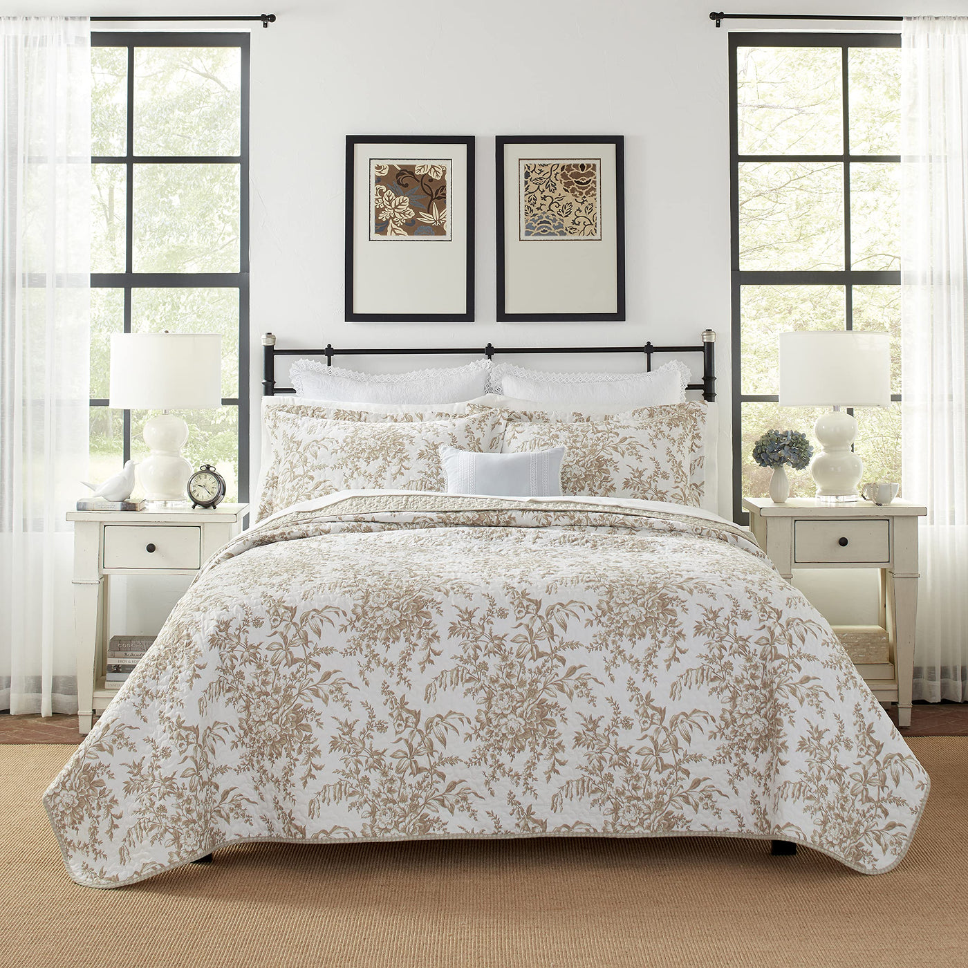 Laura Ashley - Twin Quilt Set, Reversible Cotton Bedding With Matching Sham, Home Decor For All Seasons (Bedford Mocha, Twin)