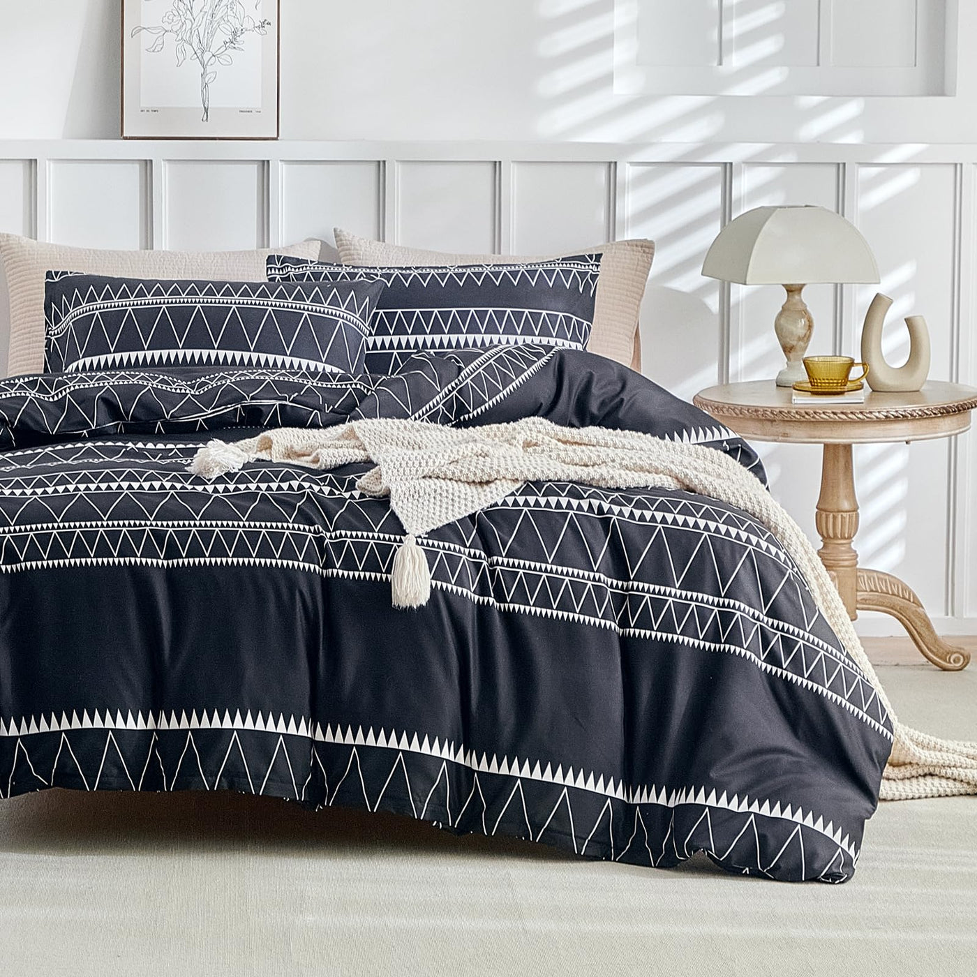 Lekesky Boho Duvet Cover Queen Size Black Aztec Pattern Duvet Cover Set, Comforter Covers Queen For 3Pc Ultra Soft Microfiber Breathable Bedding Sets With Zipper Ties (1 Comforter Cover 90 ' 'X90 ' ' +2 Pillow Cases)