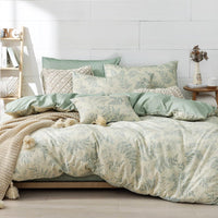 Lemiroe Botanical Cotton Comforter King Size - Dusty Green Comforter Printed With Luxrious Bluish-Grey Ferns On Beige,Reversible