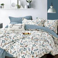 Lemiroe Botanical Cotton Comforter King Size - Lake Green Comforter With Dusky Blue & Warm Rust Leaves On Ivory,Reversible Light