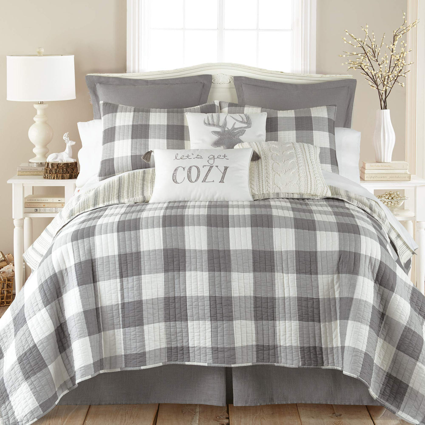 Levtex Camden Grey Quilt Bed Set: A Versatile, Farmhouse Buffalo Check Bedding Set Consisting Of A Twin Size Quilt (68 X 86 In.) And One Matching Pillow Sham (26 X 20 In.). Used By Itself, As A Layering Piece Or As A Bedspread, This Bedding Set Is Extremely Versatile.