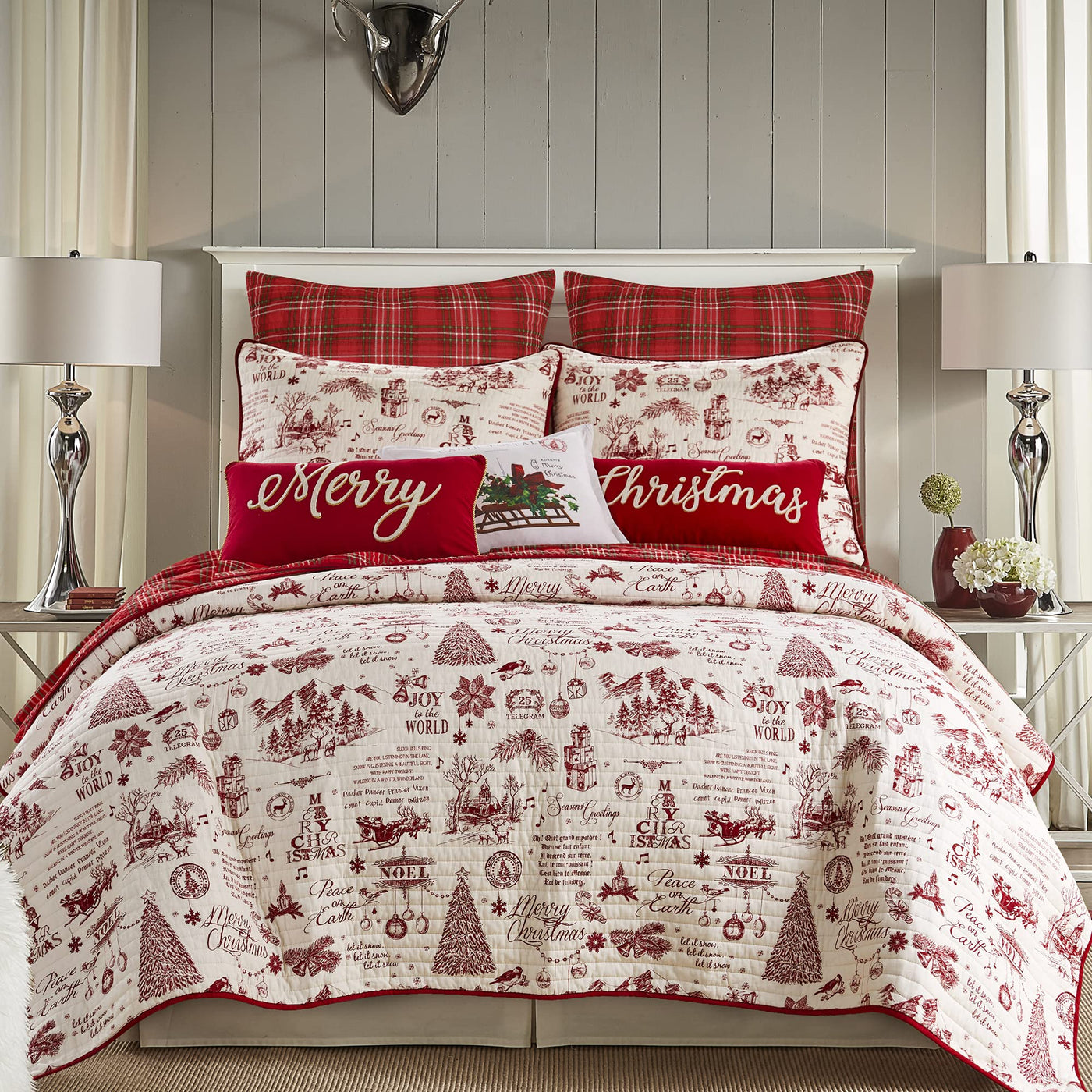 Levtex Yuletide Quilt Bed Set: A Melange Of Christmas Sayings, Phrases, Icons And Symbols, The Yuletide Bedding Set Consists Of A King Size Quilt (106X92In.) And Two Matching Pillow Shams (36X20In.). Used By Itself, As A Layering Piece Or As A Bedspread, This Bedding Set Is Extremely Versatile.