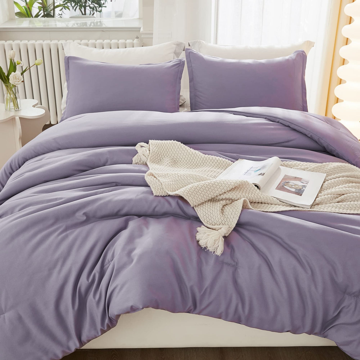 Litanika Grayish Purple Comforter Set Twin/Twin Xl Size, 2 Pieces Lightweight Solid Bedding Comforter Set, All Season Fluffy Bed