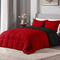Lovtex 3Pcs Black And Red Comforter Set Queen - Ultra Soft Washed Microfiber Comforter Queen Set - Reversible Down Alternative R