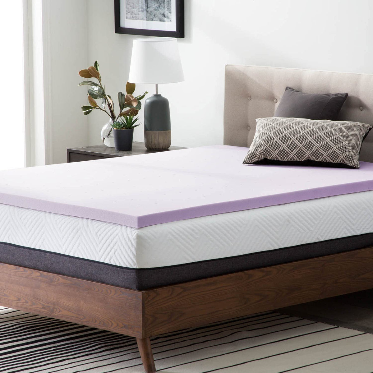 Lucid 4 Inch Lavender Infused Memory Foam Mattress Topper - Ventilated Design - California King Size