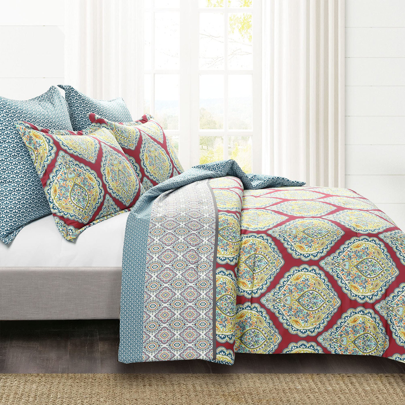 Add Energy And Color To Your Bedroom With This Harley Reversible Comforter Set. Embrace The Bohemian Charm Of This Lively Harley Reversible Comforter Set. The Bold Colors Pull Your Attention Towards The Beautiful Oversized Paisley Design, Sure To Make A Statement And Fill Your Room With Worldly Vibes. This Set'S Eclectic Mix Of Paisley Patterns In Deep, Rich Colors Brings A Warm And Luxurious Feel To Your Space. This Bedding Set Is Reversible, Giving You Two Looks In One. The Reverse Leaf Pattern Allows You To Show A More Subdued Look, Giving You Endless Options To Create New Bedding Looks. Switch Up Your Primary Or Guest Bedroom Decor As Often As You'D Like With This Reversible Maximalist Comforter Set. This Reversible Microfiber Bedding Set Offers Softness And Breathability. The Polyfill Is Perfect For Hot Sleepers And Great As An Extra Layer For Those Cold Sleepers Who Layer-Up To Keep Warm. This Boho Style Comforter Will Give Your Bedroom A Warm And Rich Look. Style This Comforter With Layers Of Coordinating Pillows And Throw Blankets. The 5 Piece Set Includes 1 Comforter, 2 Pillow Shams And 2 Euro Shams. Caring For This Bedding Set Is Easy To Maintain, Simply Machine Wash Cold On The Gentle Cycle And Tumble Dry Low. If Needed, Use Non-Chlorine Bleach For Cleaning Or An Iron On Low Heat To Release Wrinkles. Please Refer To Label For Full Care Instructions.
