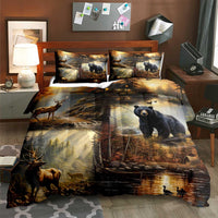 Luvivihome 3Pcs Black Bear Deer Comforter Set Queen Size, Elk Moose Mallard Duck Woodland Forest Animal Wildlife Hunting Camo Hu