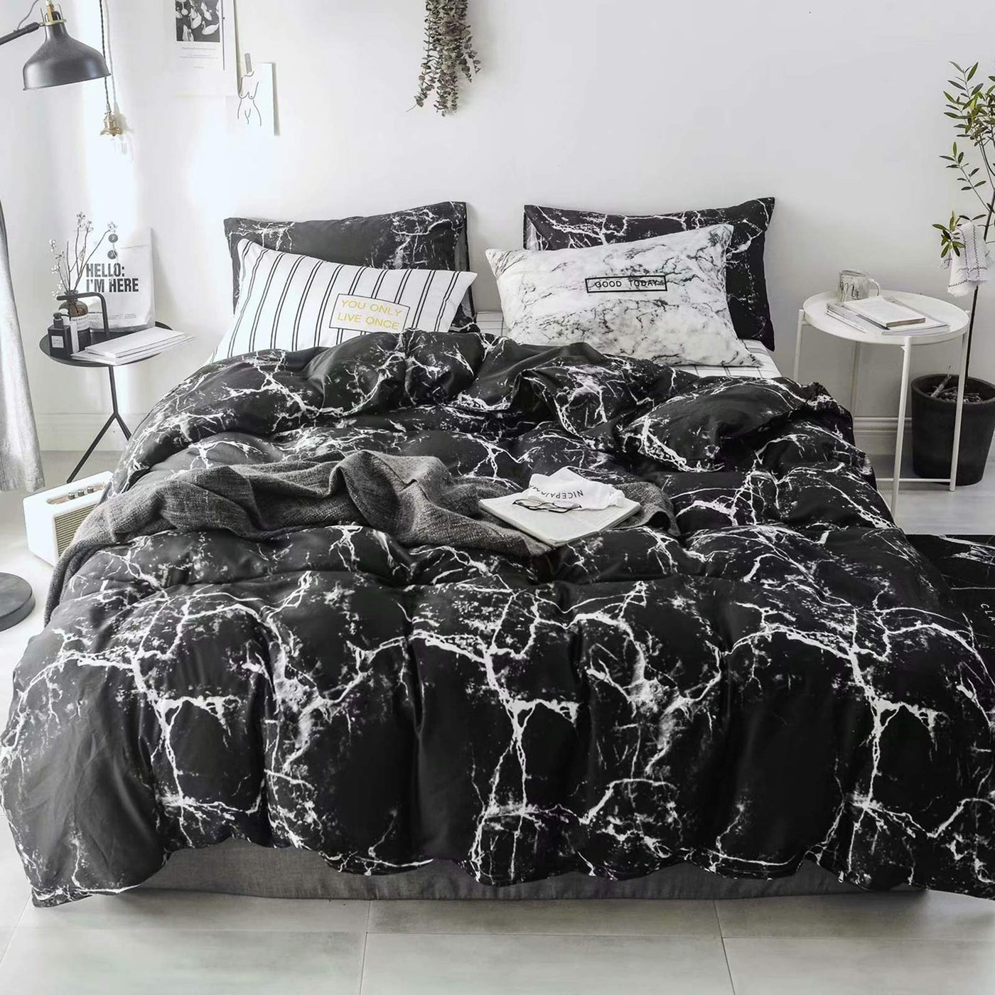Luxlovery Black Marble Comforter Set King Black And White Marble Bedding Comforter Set Women Men Gothic Abstract Comforter King