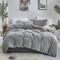 Luxlovery Grey Velvet Comforter Set Queen Men Women Plush Fluffy Dark Grey Bedding Comforter Set Micromink Flannel Heavyweight W