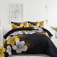 Product Description: Floral Comforter Set Pieces: 3 Color: Black And Gold Dimensions: Full/Queen/King/Cal King Material: 100% Polyester Features: Soft, Lightweight, Breathable Product Care Instructions: Machine Wash, Do Not Bleach Package List: 1 Comforter 2 Pillowcases