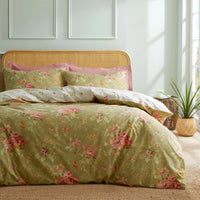 Mixinni Duvet Cover Full Size, Long Staple Cotton Reversible Green Floral Duvet Cover Set With Zipper Ties, 3 Pieces Botanical P