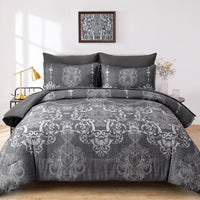 Mybedsoul 7 Pieces Grey Comforter Set King Size, Damask Bed In A Bag For King Bed, Lightweight Microfiber Boho Bedding Sets With