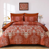 Mybedsoul 7 Pieces Terracotta Comforter Set Queen Size, Damask Bed In A Bag For Queen Bed, Lightweight Microfiber Boho Bedding S