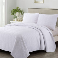 Naluka Quilt Set White 3 Piece Lightweigh Coverlet Stitched Quilt Pattern Bedspread Set King/Cal King(118'X106')