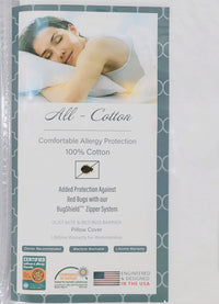 National Allergy Pillow Protectors Are Made From 100% Breathable Cotton, Which Promotes A Sounder Nights Rest. Our Covers Feature An Exclusive Bugshield Zipper System, Designed To Fully Encase Your Pillow. Recommended By Doctors. Keep Your Pillows Clean And Protected With The Bugshield Two-Part System. The Auto Locking Zipper Ensures That It Will Stay Closed. An Added Barrier Creates A Fabric Shield Under The Zipper Closure To Doubly Ensure There Are No Gaps. Our 100% Cotton Weave, Is Recommended By Doctors Nationwide. Our Fabric Is Woven So Tightly That Only Air Can Get Through. With A Mean Pore Size Of 2.6 Microns, Our Breathable Fabric Keeps You Cool, Comfortable, And Protected. Our Pillow Encasement Is Soft To The Touch And Noiseless When Moving Around While Asleep. This Pillow Cover Is Designed To Provide An Extra Layer Of Quality Protection. Our Cotton Zippered Pillow Encasements Are Machine Washable, Making Them A Perfect Choice. Our Pillow Protectors Are Easy To Clean & Use.