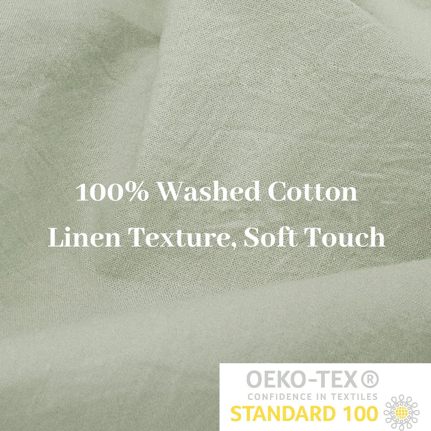 Nexhome Pro Duvet Cover Set California King Linen Feel Textured Organic Natural 100% Washed Cotton Duvet Cover 3 Pieces Bedding Set Zipper Closure, Breathable, Soft, Sage Green (No Comforter)