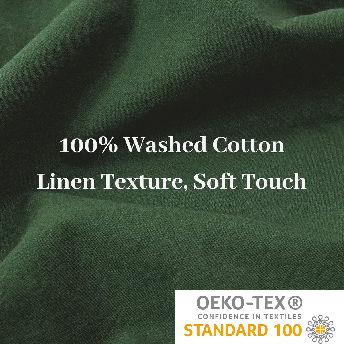 Nexhome Pro Duvet Cover Set California King Linen Look Textured Organic Natural 100% Washed Cotton Duvet Cover 3 Pieces Bedding Set With Zipper Closure, Breathable, Soft, Forest Green (No Comforter)