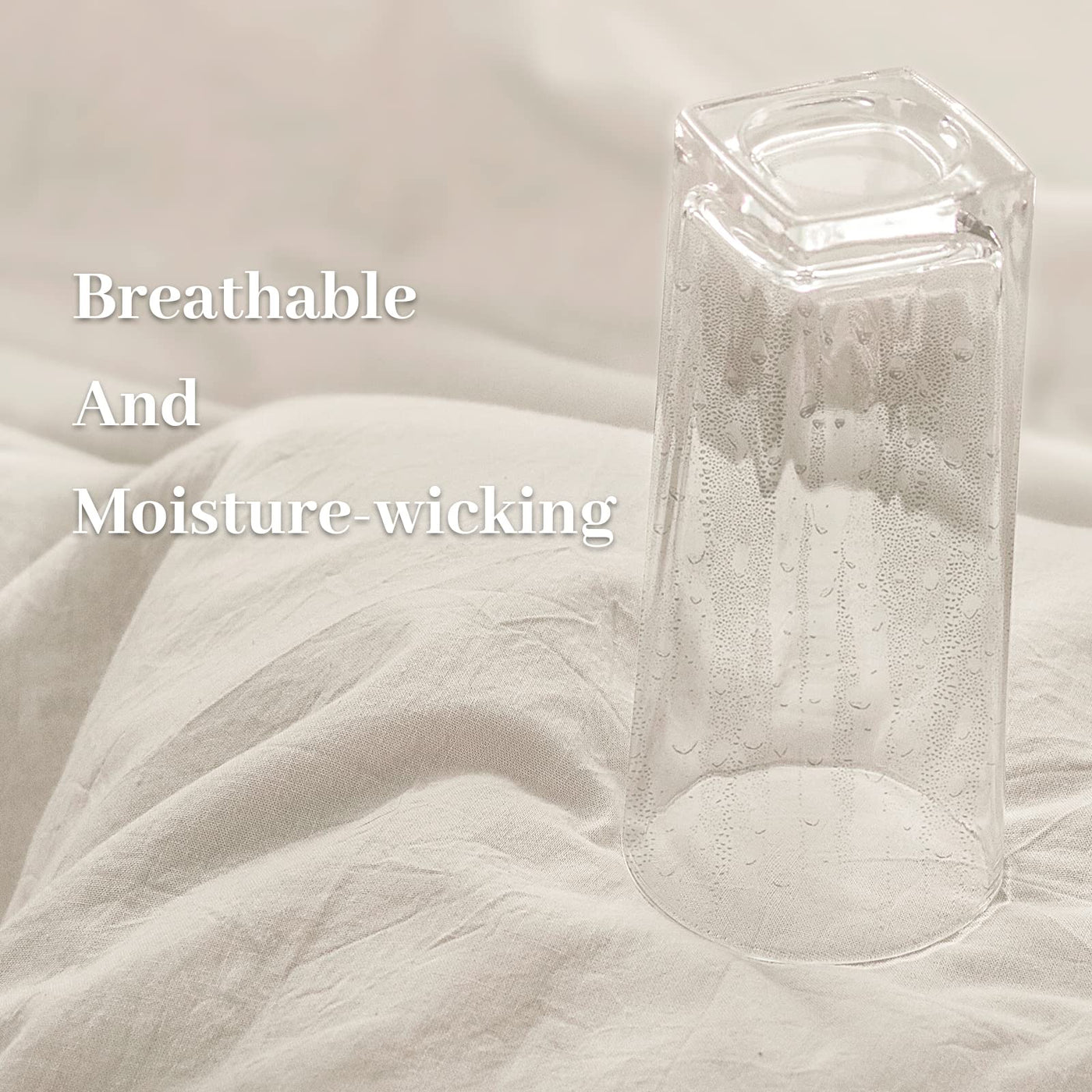 Nexhome Pro Duvet Cover Set Super King 108'X98' Linen Feel Textured Cream Grey Organic Natural 100% Washed Cotton 3 Pieces Bedding Set With Zipper Closure, Breathable, Soft (No Comforter)